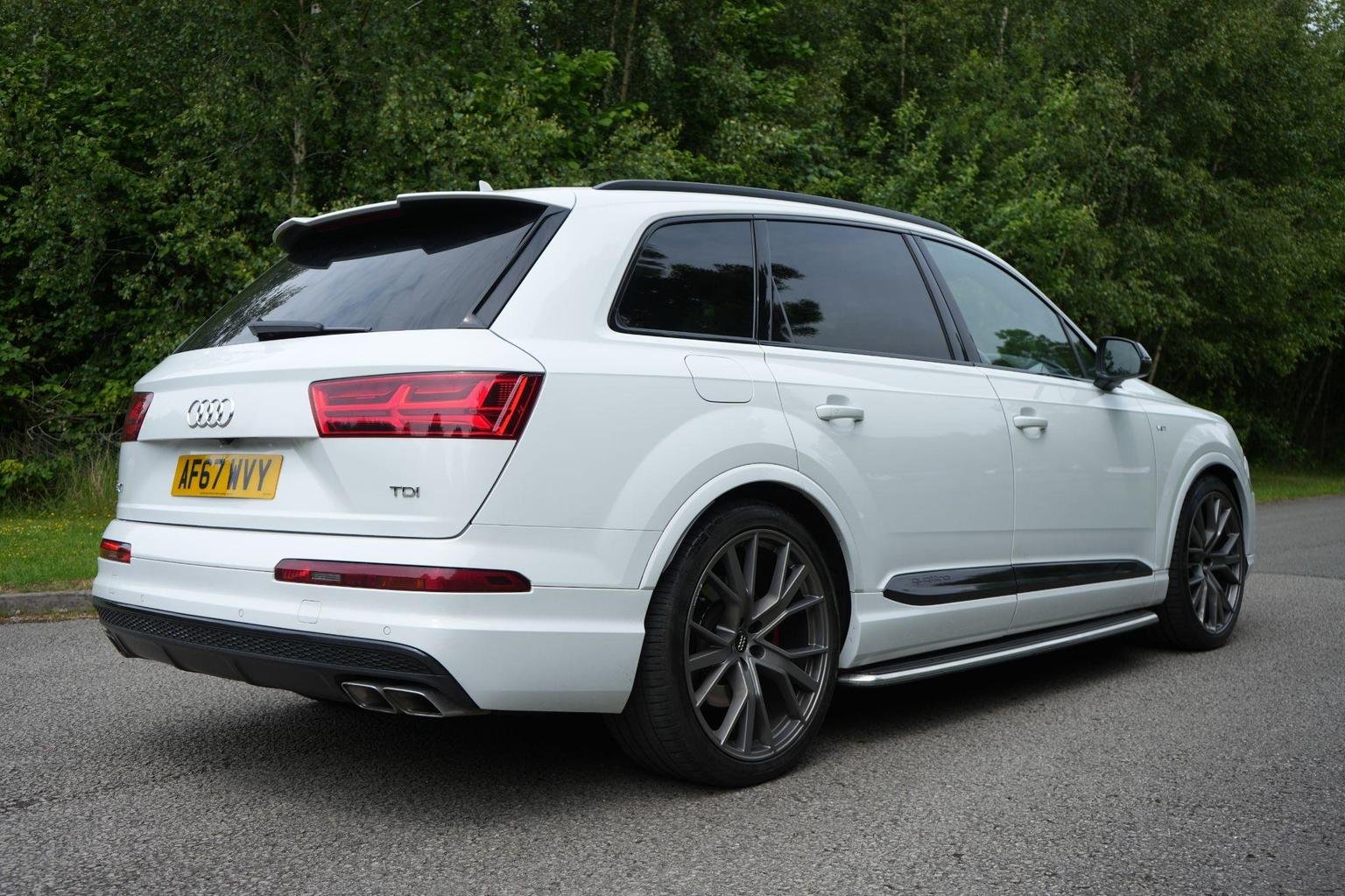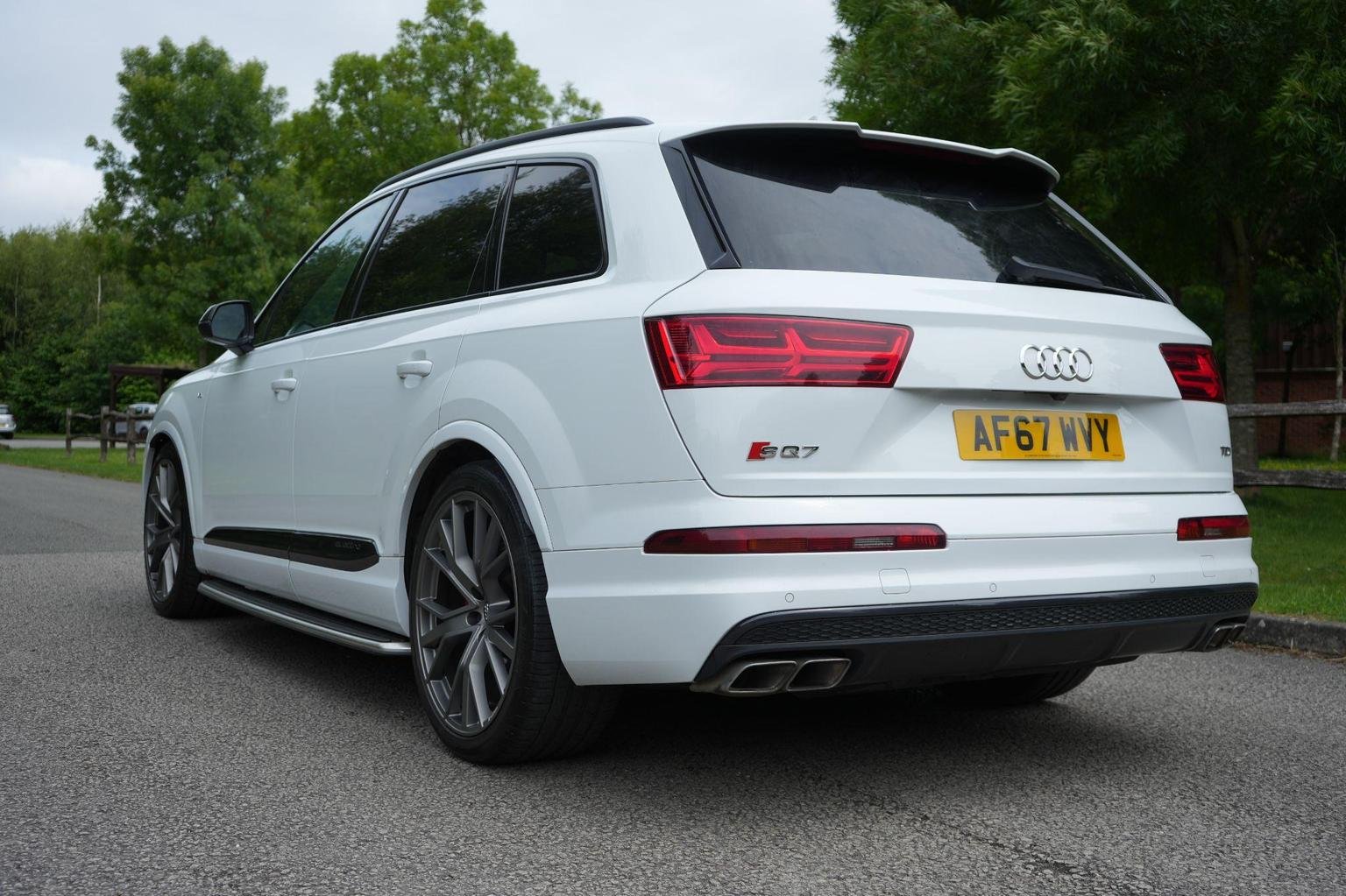 20in Alloy Wheels - 5-Arm Off Road Design - Matt Titanium Look Gloss Turned, 7 Seats, AMI - Audi Music Interface, Active Sound Exhaust System, Adaptive S Air Suspension, Airbags - Front Side with Curtain, All Weather LED Headlights, Aluminium Roof Rails, Aluminium Scuff Plates with SQ7 Logo, Anti Theft Locking Wheel Bolts, Anti-Theft Alarm, Audi Connect - 3 Month Trial, Audi Connect Infotainment Embedded SIM, Audi Connect Safety and Service - e-call, Audi Drive Select, Audi Hill Hold Assist, Audi Parking System Plus, Audi Pre-Sense City, Audi Smartphone Interface, Audi Sound System, Audi Virtual Cockpit, Auto-Dimming Rear-View Mirror, Bluetooth Interface, Brake Calipers - Black with S Logo, Child Locks, Chrome Package, Cloth Headlining in Black, Comfort Front Centre Armrest, Cruise Control with Speed Limiter, DAB Digital Radio Reception, Deluxe Four-Zone Automatic Climate Control, Door Mirrors - Heated-Electrically Adjustable-Folding, Driver Information System with Colour Display, Driver and Front Passenger Airbag with Front Passenger Airbag Deactivation, Dynamic Rear Indicators, ESC - Electronic Stabilisation Control inc ABS - EBD - ASR - EDL, Electric Windows - Front and Rear, Electrically Adjustable 4-Way Lumbar Support, Electrically Adjustable Front Seats, Electromechanical Parking Brake, Electromechanical Power Steering, Exterior Mirror Housings in Aluminium Look, First Aid Kit and Warning Triangle, Front and Rear Floor Mats, Full Body-Colour Paint Finish, Gloss Package, Headlight Washer System, Heat Insulating Glass - Windscreen, Heated Front Seats, High-Beam Assist, Hill Descent Control, ISOFIX Child Seat Mounting, Interior Light Package, Keyless Go, LED Rear Lights, Light and Rain Sensor, Luggage Compartment - Cover Electric, MMI Navigation Plus including MMI Touch, MMI Radio Plus, Power Operated Tailgate, Power Steering - Servotronic, Privacy Glass, Rear View Camera, Remote Central Locking, S Body Styling, Seat Belt Monitoring, Stainless Steel Loading Sill Protector, Steel Pedal Cluster, Steering Wheel - 3-Spoke Leather - Multi-function - Sports, Steering Wheel - Height and Reach Adjustable, Tool Kit, Two Cup-Holders in Centre Console, Tyre Pressure Loss Indicator, Tyre Repair Kit, Upper Inlays in Brushed Aluminium-Sono and Lower Inlays in Chrome Paint Finish-Slate Grey, Voice Control System